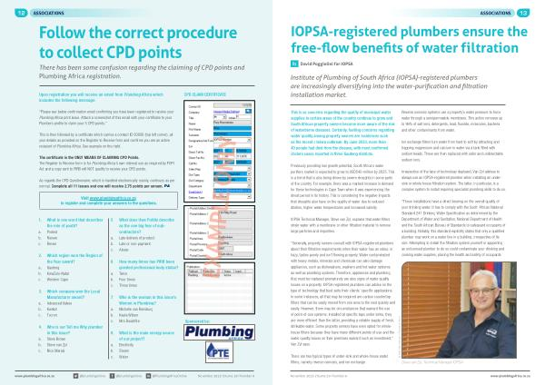 Institute of Plumbing of South Africa ( IOPSA ) -registered plumbers are increasingly diversifying into the water-purification and filtration installation market .