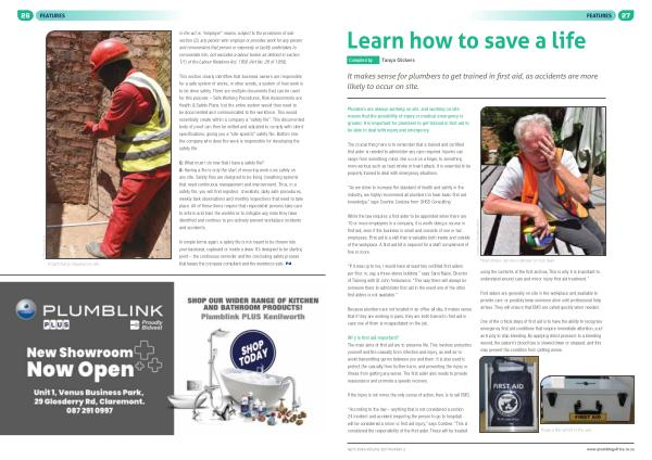 “ As we strive to increase the standard of health and safety in the industry , we highly recommend all plumbers to have basic first aid knowledge ,” says Courtne Coetzee from OHSS Consulting .