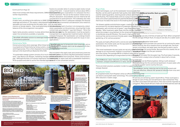 “ A conservancy tank ’ s function is to temporarily collect and retain wastewater on the premises , ensuring that it does not contaminate groundwater ,” says Van Rooyen . “ Once the tank reaches its capacity , the wastewater must be pumped out and transported to an appropriate treatment plant . Alternatively , instead of disposal , the wastewater can undergo treatment in an on-site wastewater treatment plant for reuse in non-potable applications .”