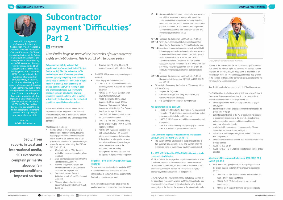 Uwe Putlitz helps us unravel the intricacies of subcontractors’ rights and obligations. This is part 2 of a two-part series