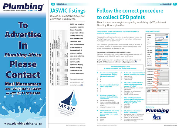 JASWIC is an acceptance body created to promote the use of acceptable components in water and sanitation installations; in the interest of water conservation, health, safety and the prevention of water pollution; to the mutual benefit of consumers, suppliers, water service authorities and water service providers; and the promotion of efficiency in service delivery by co-operation and the exchange of information.