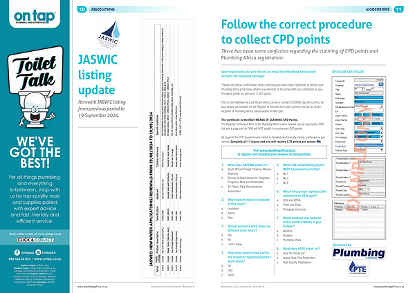 www . plumbingafrica . co . za November 2024 Volume 30 I Number 9