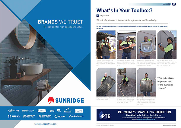 Bernard Mpofu and Paul Kruger both find drip trays to be incredibly useful , regardless of their size . “ It prevents ceiling damage when doing geysers ,” says Mpofu . |