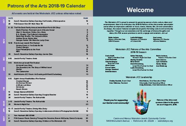 The Weinstein JCC is proud to present its upcoming season of arts, culture, ideas and