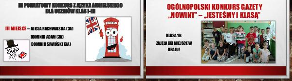 III POWIATOWY KONKURS Z JĘZYKA ANGIELSKIEGO DLA UCZNIÓW KLAS I-III III MIEJSCE – ALICJA RACHWALSKA (3A) DOMINIK ADAM (3A) DOMINIK SIWIŃSKI (3A)