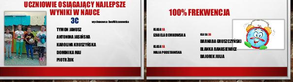 100% FREKWENCJA KLASA 1A IZABELA DEMKOWSKA KLASA 3B BARNABA GRUSZCZYĆSKI KLASA 1A MAJA PODSTAWSKA BLANKA BANASIEWICZ BAJOREK JULIA