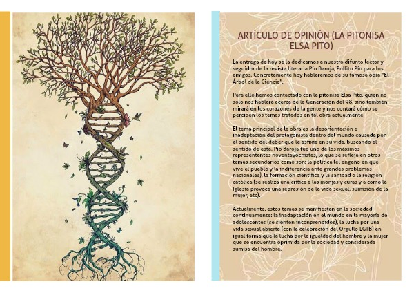 La entrega de hoy se la dedicamos a nuestro difunto lector y seguidor de la revista literaria Pío Baroja, Pollito Pío para los amigos. Concretamente hoy hablaremos de su famosa obra "El Árbol de la Ciencia".