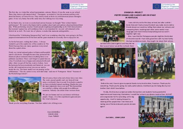 performance?. We went to the theatre hall in another school and each partner school performed their