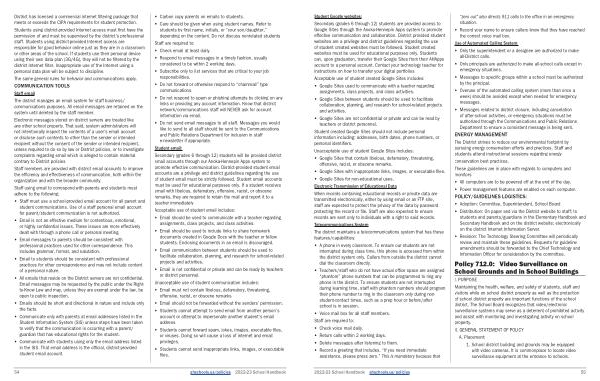 • Distribution : On paper and via the District website to staff ; to students and parents / guardians in the Elementary Handbook and Secondary Handbook and on the district website ; electronically on the district Internet Information Server .
