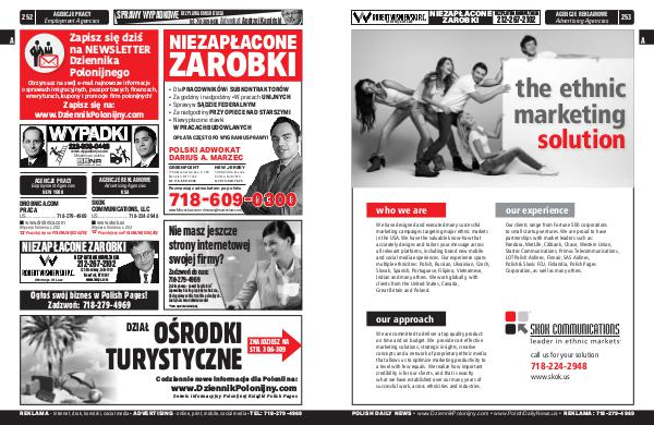 We have designed and executed many successful marketing campaigns targeting major ethnic markets in the USA. We have the valuable know-how that accurately designs and tailors your message across all relevant platforms, including brand new mobile and social media experiences. Our experience spans multiple ethnicities: Polish, Russian, Ukrainian, Czech, Slovak, Spanish, Portuguese, Filipino, Vietnamese, Indian and many others. We work globally, with clients from the United States, Canada, Great Britain and Poland.