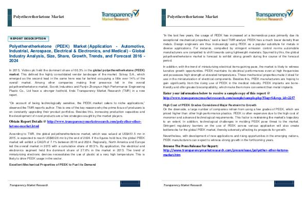 Browse The Press Release For Report: http:// www. transparencymarketresearch. com / pressrelease / polyether-ether-ketonemarket. htm