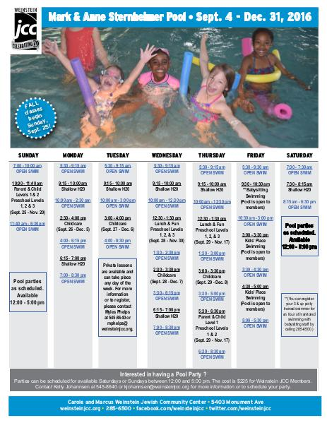 Parties can be scheduled for available Saturdays or Sundays between 12:00 and 5:00 pm. The cost is $225 for Weinstein JCC Members.