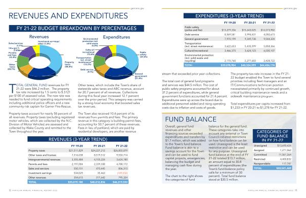 TOTAL GENERAL FUND revenues for FY 21-22 were $ 46.2 million . The property tax rate increased by 1.5 cents to $. 5121 per $ 100 of assessed value . The new rate was needed to fund critical operating requirements including additional police officers and a new community risk captain for Garner Fire-Rescue .