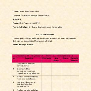 Con la siguiente Escala de Rango se evaluará el trabajo realizado por cada uno