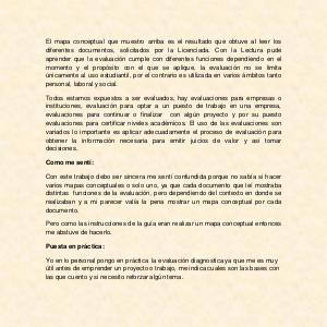 Con este trabajo debo ser sincera me sentí confundida porque no sabía si hacer varios mapas conceptuales o solo uno, ya que cada documento que leí mostraba distintas funciones de la evaluación, pero dependiendo del contexto en donde se realizaban y a mi parecer valía la pena mostrar un mapa conceptual por cada documento.