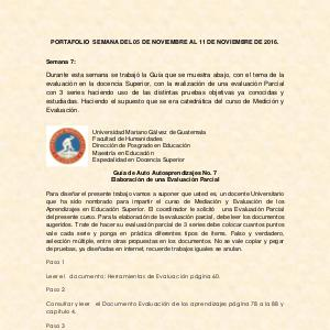 evaluación en la docencia Superior, con la realización de una evaluación Parcial