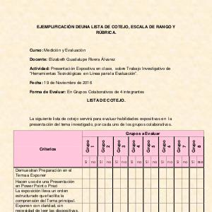 EJEMPLIFICACIÓN DEUNA LISTA DE COTEJO, ESCALA DE RANGO Y