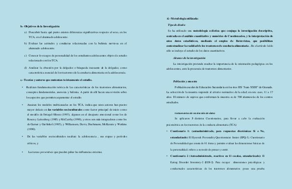 contextualizar la realidad de los trastornos de conducta alimentaria . En el artículo leído