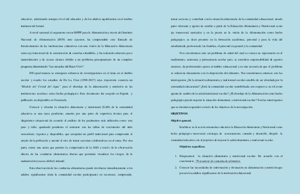 fortalecimiento de las instituciones educativas con una visión de la Educación Alimentaria