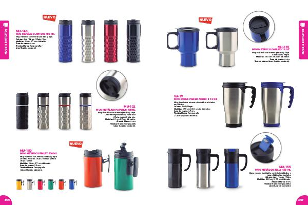 Mug metálico con interior plástico y tapa.