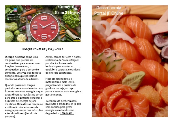 Assim, comer de 3 em 3 horas, realizando de 5 a 6 refeições por dia, é a forma mais indicada para manter o equilíbrio corporal e os níveis de energia constantes.