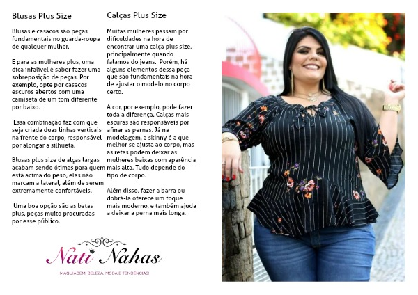 E para as mulheres plus, uma dica infalível é saber fazer uma sobreposição de peças. Por exemplo, opte por casacos escuros abertos com uma camiseta de um tom diferente por baixo.