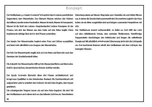 Der Vertikalraum „ Lo Spazio Scorrente “ ist inspiriert durch meinen persönlichen Gegenstand , dem Wasserhahn . Das Element Wasser , welches den Hahnen durchfliesst , weckte meine Faszination . Wasser ist stark , Wasser ist transparent , Wasser ist die Kraft des Lebens . Hauptbestandteil meines Konzeptes ist der Prozess , wie sich das Wasser aus dem Hahn auf eine Reise begibt . Diese inspirierende Abfolge lässt sich in drei Phasen unterteilen :