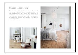 Die eher niedrigen Innenräume sollen sich in einem hellen Weiss präsentieren , um das Raumerlebnis so luftig wie möglich zu gestalten . So werden die historischen Täfer und Decken überstrichen . Die vorhandenen Riemenböden werden weitgehend freigelegt und aufgewertet .