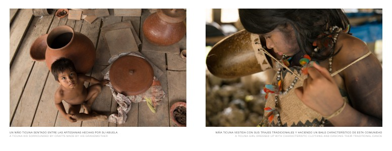 NIÑA TICUNA VESTIDA CON SUS TRAJES TRADICIONALES Y HACIENDO UN BAILE CARACTERÍSTICO DE ESTA COMUNIDAD