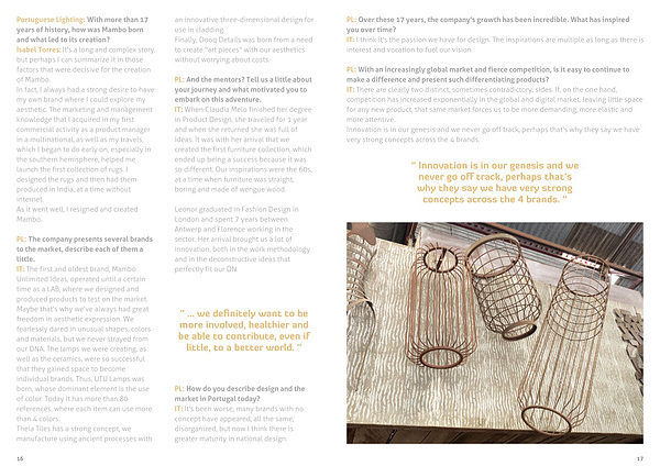 IT: I think it's the passion we have for design. The inspirations are multiple as long as there is interest and vocation to fuel our vision.