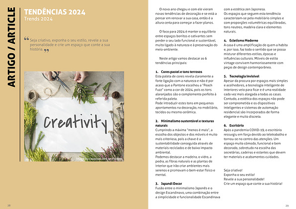 O foco para 2024 é manter o equilíbrio entre espaços bonitos e cativantes sem perder o seu lado funcional e sustentável, muito ligado à natureza e à preservação do meio-ambiente.