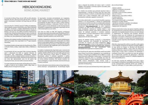 Com base nos dados do INE, 560 empresas portuguesas efectuaram exportações de produtos para Hong Kong, em 2011, prevendo-se um aumento para os anos seguintes, ocupando as Máquinas e Aparelhos eléctricos um total de 36,9%.