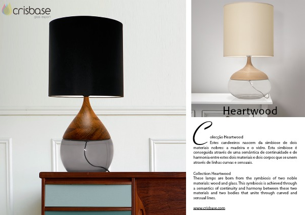 Estes candeeiros nascem da simbiose de dois materiais nobres: a madeira e o vidro. Esta simbiose é conseguida através de uma semântica de continuidade e de harmonia entre estes dois materiais e dois corpos que se unem através de linhas curvas e sensuais.