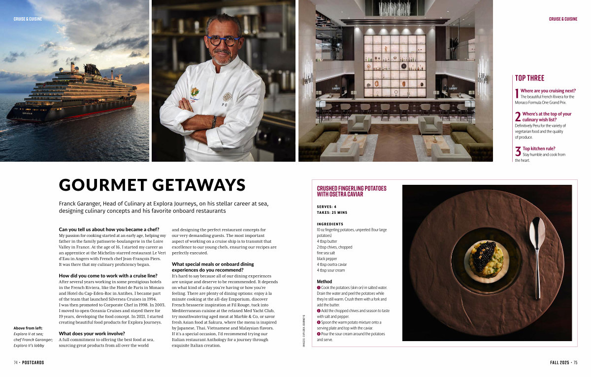 Franck Garanger, Head of Culinary at Explora Journeys, on his stellar career at sea, designing culinary concepts and his favorite onboard restaurants