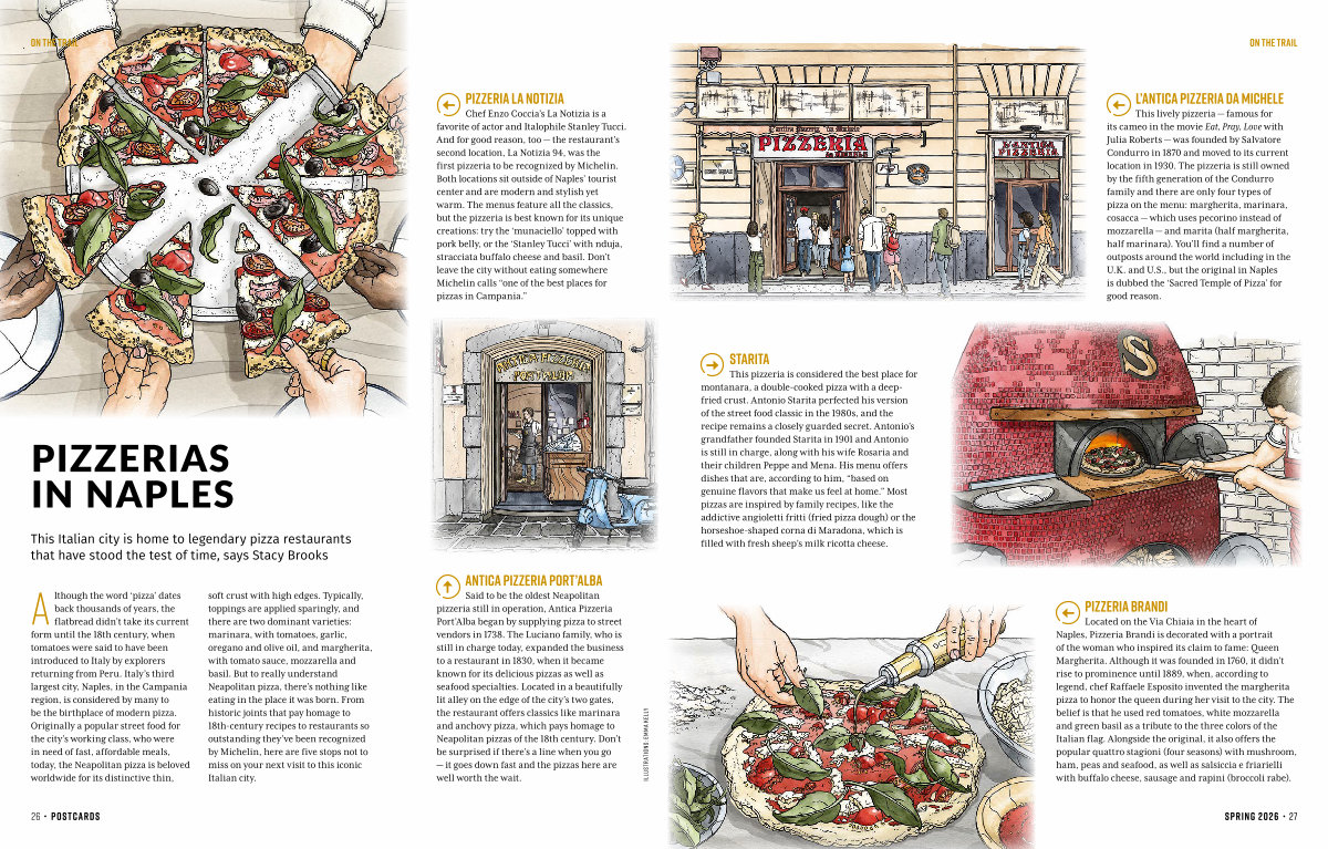 Located on the Via Chiaia in the heart of Naples, Pizzeria Brandi is decorated with a portrait of the woman who inspired its claim to fame: Queen Margherita. Although it was founded in 1760, it didn’ t rise to prominence until 1889, when, according to legend, chef Raffaele Esposito invented the margherita pizza to honor the queen during her visit to the city. The belief is that he used red tomatoes, white mozzarella and green basil as a tribute to the three colors of the Italian flag. Alongside the original, it also offers the popular quattro stagioni( four seasons) with mushroom, ham, peas and seafood, as well as salsiccia e friarielli with buffalo cheese, sausage and rapini( broccoli rabe).