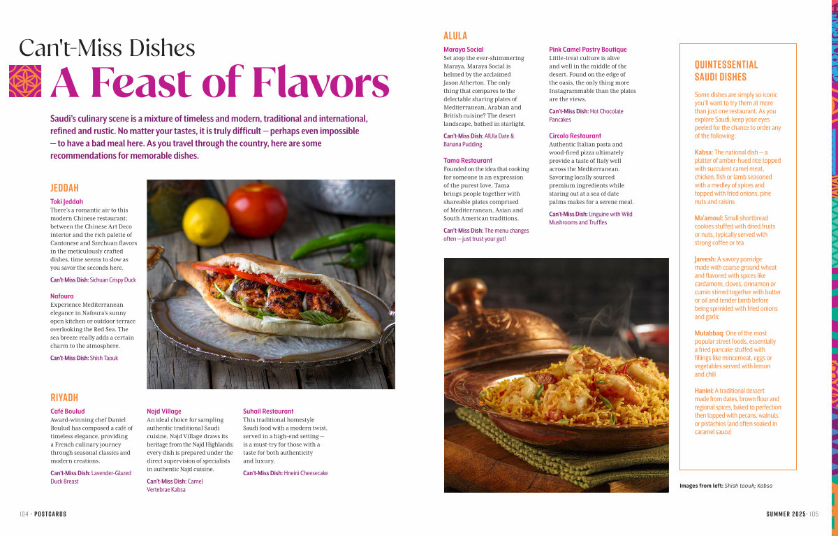 Some dishes are simply so iconic you’ ll want to try them at more than just one restaurant. As you explore Saudi, keep your eyes peeled for the chance to order any of the following: