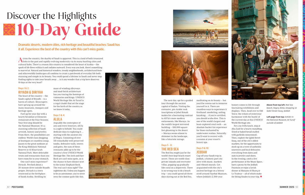 Left page from top: Exhibit in the National Museum; At-Turaif outside of Jeddah