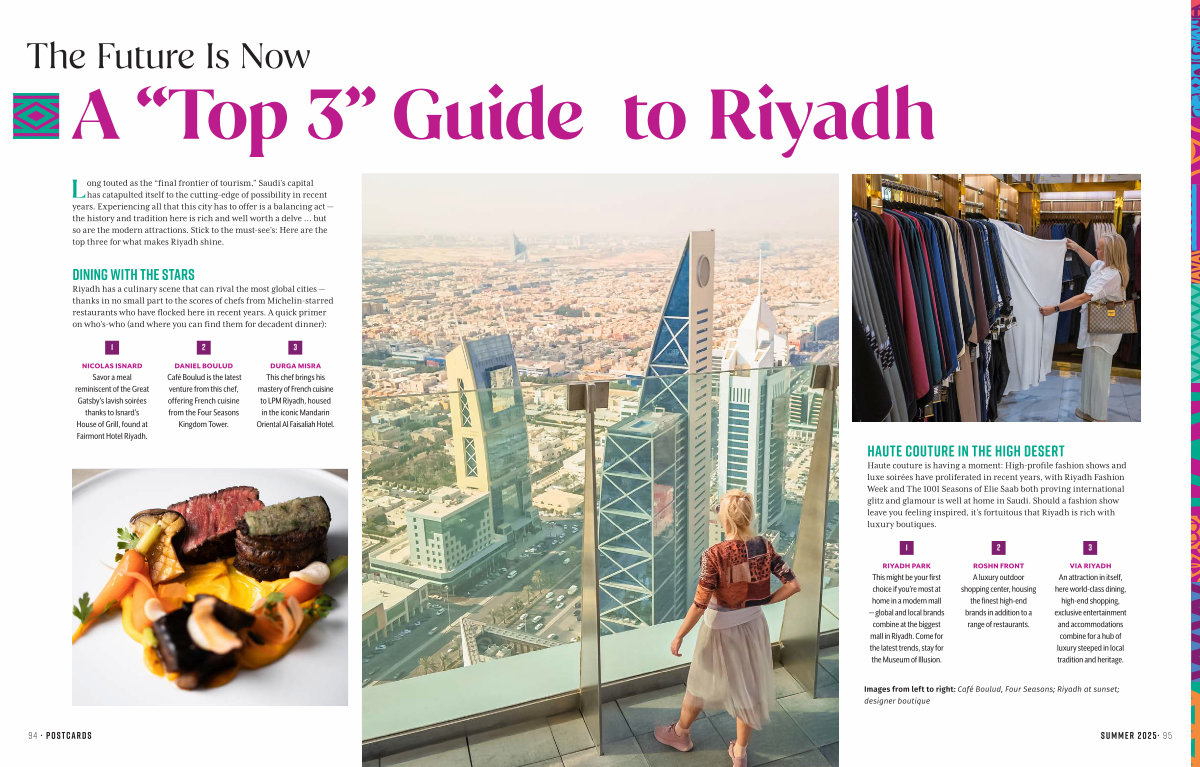 Long touted as the“ final frontier of tourism,” Saudi’ s capital has catapulted itself to the cutting-edge of possibility in recent years. Experiencing all that this city has to offer is a balancing act— the history and tradition here is rich and well worth a delve … but so are the modern attractions. Stick to the must-see’ s: Here are the top three for what makes Riyadh shine.