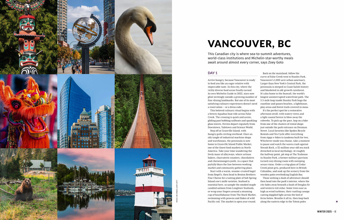 This Canadian city is where sea-to-summit adventures, world-class institutions and Michelin-star-worthy meals await around almost every corner, says Zoey Goto images: awl images; alamy; getty
