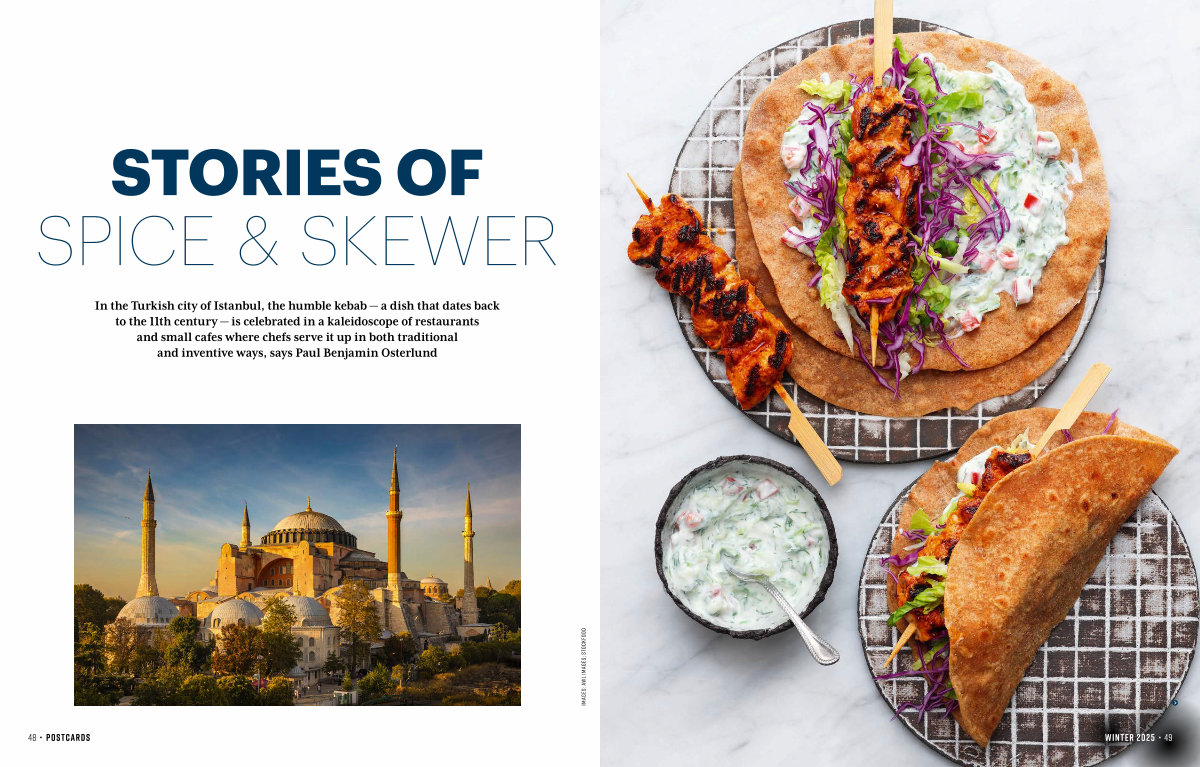 In the Turkish city of Istanbul, the humble kebab— a dish that dates back to the 11th century— is celebrated in a kaleidoscope of restaurants and small cafes where chefs serve it up in both traditional and inventive ways, says Paul Benjamin Osterlund images: awl images; stockfood
