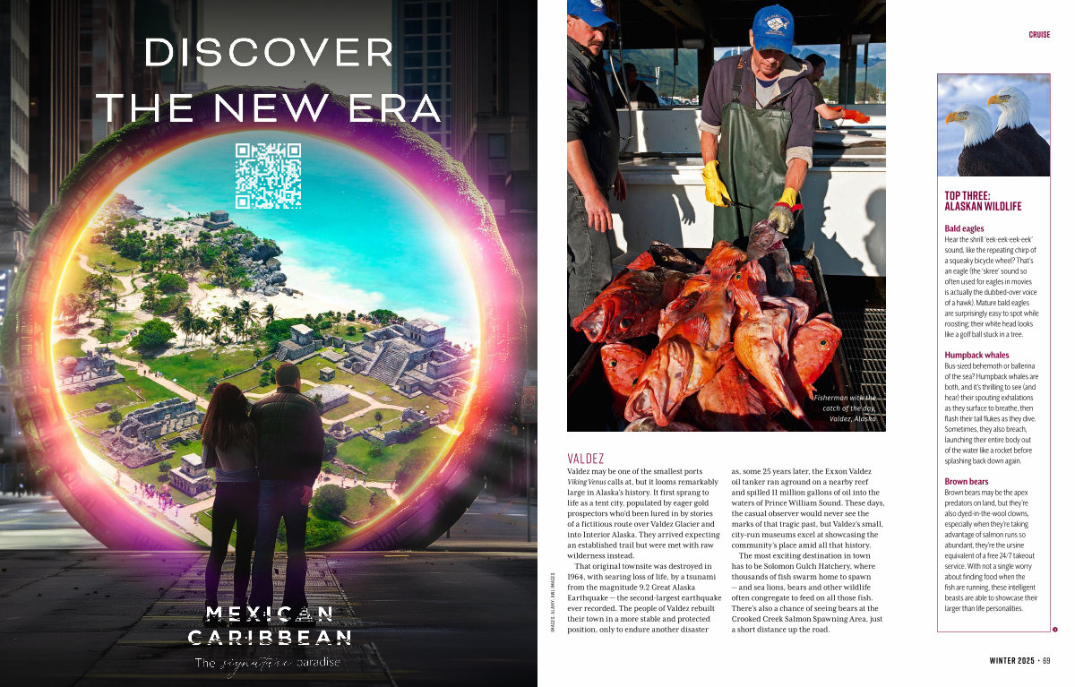Valdez may be one of the smallest ports Viking Venus calls at, but it looms remarkably large in Alaska’ s history. It first sprang to life as a tent city, populated by eager gold prospectors who’ d been lured in by stories of a fictitious route over Valdez Glacier and into Interior Alaska. They arrived expecting an established trail but were met with raw wilderness instead.