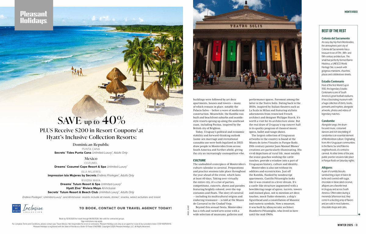 Age restrictions may apply. For complete Terms and Conditions, please contact your Travel Advisor. Not responsible for errors or omissions. Pleasant Holidays acts only as an agent for cruise & tour providers listed. CST # 1007939-10. Pleasant Holidays is registered with the State of Florida as a Seller Of Travel ST # 37983. Copyright © 2025 Pleasant Holidays, LLC. All Rights Reserved.