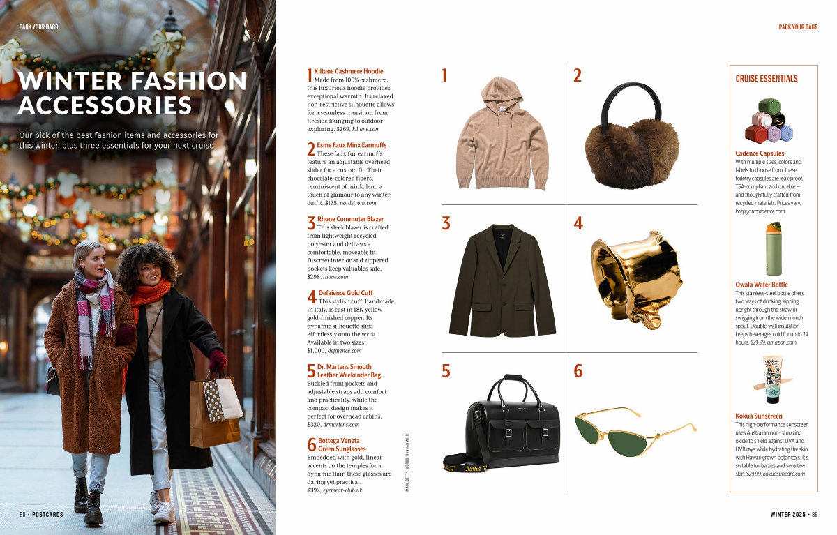 Our pick of the best fashion items and accessories for this winter, plus three essentials for your next cruise