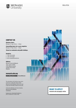 The information in this brochure was correct at the time of publication( August 2025). Monash University Malaysia reserves the right to alter this information should the need arise.