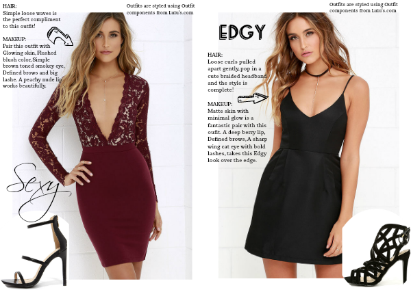 Matte skin with minimal glow is a fantastic pair with this oufit. A deep berry lip, Defined brows, A sharp wing cat eye with bold lashes, takes this Edgy look over the edge.