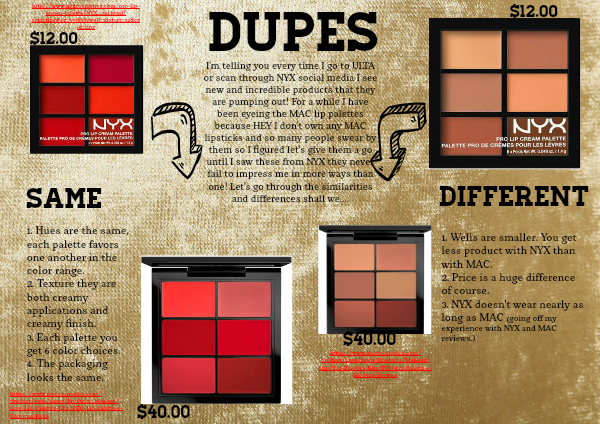 3. NYX doesn't wear nearly as long as MAC (going off my experience with NYX and MAC reviews.)