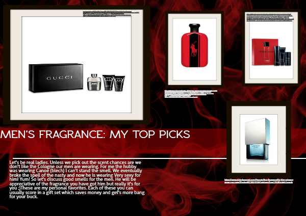 Let's be real ladies. Unless we pick out the scent chances are we don't like the Cologne our men are wearing. For me the hubby was wearing Canoe (blech) I can't stand the smell. We eventually broke the spell of the nasty and now he is wearing Very sexy for him! Yum! So let's discuss good smells for the men. He will be appreciative of the fragrance you have got him but really it's for you ;)These are my personal favorites. Each of these you can usually score in a gift set which saves money and get's more bang for your buck.
