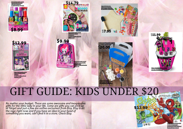 No matter your budget. These are some awesome and inexpensive gifts for the little lady in your life. Some are gifts you can pick up at Target and just a few are online exclusives from Etsy. Etsy is all the rage right now and if you have an idea in your head of something you want, can't find it in a store. Check Etsy.