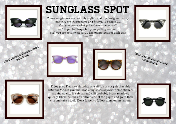These sunglasses are not only stylish and top designer quality but they are inexpensive and fit EVERY budget.......