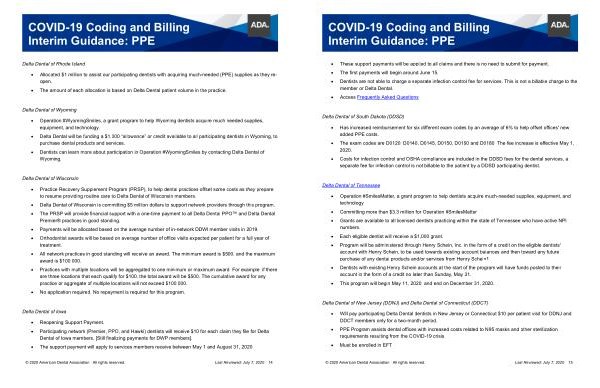 • PPE Program assists dental offices with increased costs related to N95 masks and other sterilization requirements resulting from the COVID-19 crisis .